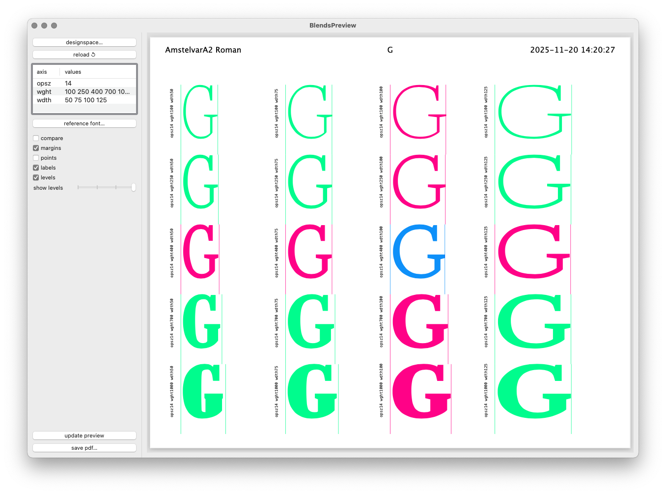 A tool for previewing blended locations from a parametric designspace and comparing them to a reference font.