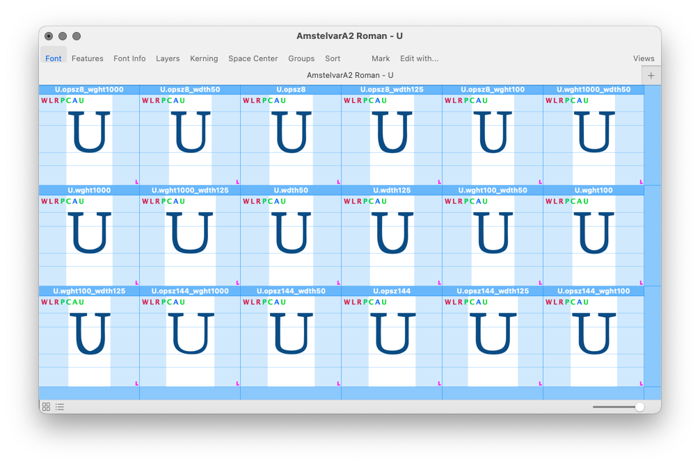 - Import the selected glyph from the selected parametric sources into a temporary font for editing.